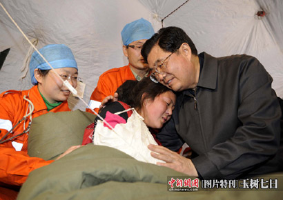 温家宝在青海省玉树县玉树自治州医院看望受灾民众