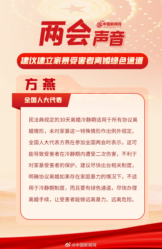 【方燕代表:#建议建立家暴受害者离婚绿色通道#】