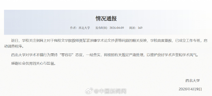 【#西北大学通报贾浅浅论文涉嫌抄袭#】