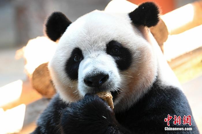 广东广州:大熊猫三胞胎品尝特制“月饼”