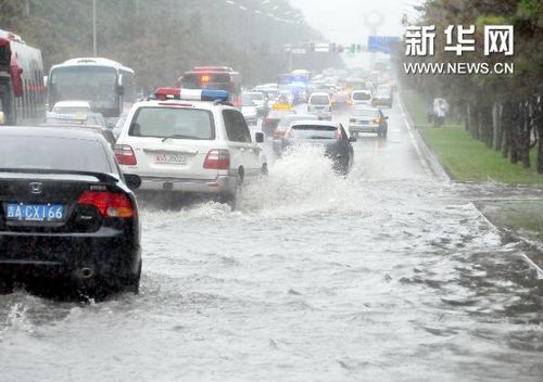 7月28日,车辆在长春市区积水路段行进。近日,吉林省多个地区出现暴雨、大暴雨天气。暴雨造成长春市部分街区积水严重,影响了交通的正常运行。新华社记者 齐海山摄