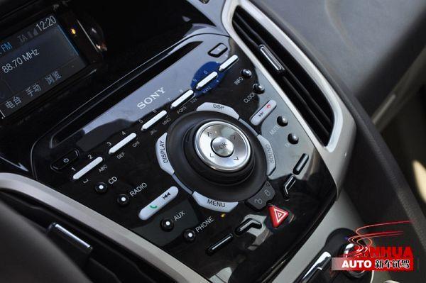 新福克斯的四辐式真皮包裹方向盘软硬度适中,手感也很好。功能键也非常丰富,9点位置是行车电脑切换快捷键,3点位置则是音响控制,7点位置背后的是定速巡航快捷键,5点位置背后的则是中控台SYNC系统的控制快捷键,还带语音通讯快捷键。