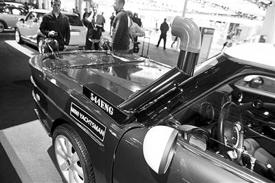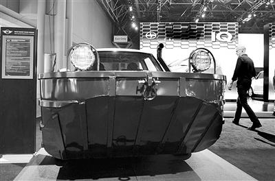 图①、图②为MINI Cooper Yachtsman水陆两用汽车。这辆水陆两用汽车作为一款汽车和游艇的结合体,将成为汽车工业未来跨领域发展的一个标志。汽车装备了车身同色的潜水通气管和可伸缩的顶部天线。座舱采用了防水处理,座椅垫同时具有双重作用,在水中可以起到保持车辆漂浮的作用。车辆还装备了精密航海记时器,以便卫星导航系统出现故障时使用。