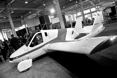 图③、图④、图⑤是车展上展出的“飞行汽车”。这款“飞行汽车”名为Transition,由马萨诸塞州特拉富贾公司研制。它两座四轮,高2米,翼展宽8米。机翼折叠起来时,与普通汽车功能无异。“飞行汽车”在路上行驶时速可达112公里;飞行时速最高184公里,最大航程为787公里,需要518米的起飞距离。