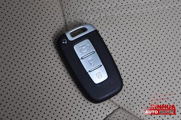 ix35的钥匙造型精致且很有质感,值得一提的是在前排座椅中间的扶手箱里设有专门的钥匙卡槽,其作用是当钥匙没电时可将钥匙插入卡槽中启动汽车并为钥匙充电。