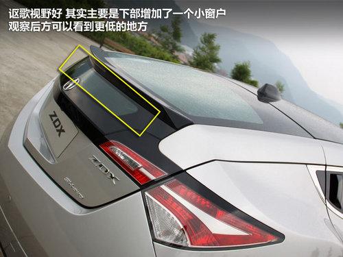 徒然向下的B柱与科技感十足的尾灯,都像是一款跑车的设计。加之后窗上的尾翼以及出现在保险杠上的双出排气,使ZDX看上去更加运动化。为了创建全新的尾部视觉性,ZDX与X6的后窗视野都存在着极大的盲区,好在有倒车影像系统的帮助。单是ZDX的视野相对低些,能看到的地方更多。