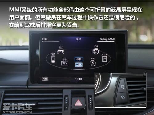 借由位于中控台中央上方的可折叠液晶屏,多媒体交互界面系统MMI的所有功能都可呈现出来,并且全新A6L还从家族大哥A8L那里借来了支持手写功能的触摸面板,其工艺与MMI操控系统的的其他旋钮和按键一样,都非常精致。