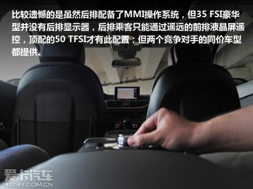 遗憾的是,尽管后排扶手提供了MMI功能控制区,但这款35FSI 豪华型却没有提供后排液晶显示器,所以坐在后排的“VIP”只能纡尊降贵的望着遥远的前排液晶屏来对系统进行操作;更令这款35FSI豪华型感到面上无光的是,同价位的530Li豪华型和E300L时尚型可都是有此配置的。
