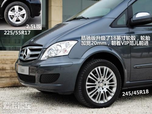 言归正传,说说本次试驾的主角——唯雅诺皓驰版。首先,在外观上,轮胎、轮毂都有了变化。熟悉Viano的朋友可能知道125周年限量版上标配的19英寸大轮毂,视觉效果非常出色,但由于是进口版,售价偏高且限量,不能满足大众消费者。而在皓驰版上,厂家将轮毂升级至18英寸,朝着VIP范儿又迈进了一步。