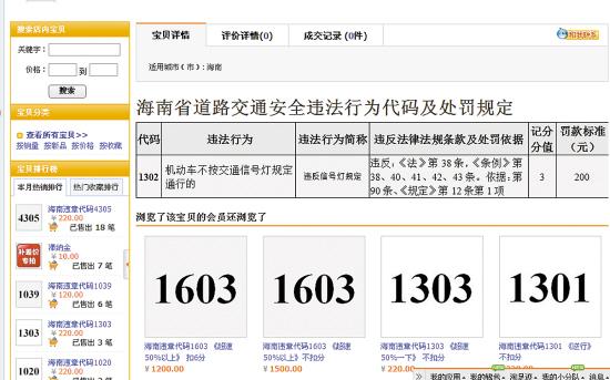 在淘宝网上,记者以“违章扣分”为关键词搜索,显示历史结果为8744件,但不少被淘宝屏蔽。可显示的结果中,多以“违章扣分”的服务为幌子,每分的售价却高达100至300元。一家代办违章查询的深圳淘宝店成交记录显示,单价100元的“违章跑腿业务”30天内就售出162件,成交记录中多数购买了2件以上。记者以需买分的车主身份咨询该店主,店主表示“违章跑腿业务”就包括代扣驾照分,“全国各地的违章都可以办,快的话当天就能办结。”