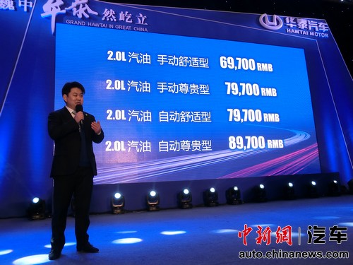 华泰汽车集团董事张宏亮公布车型售价。 中新网 王槊摄