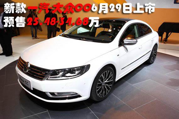 新一汽大众CC 29日上市 预售25.48万-34.68万