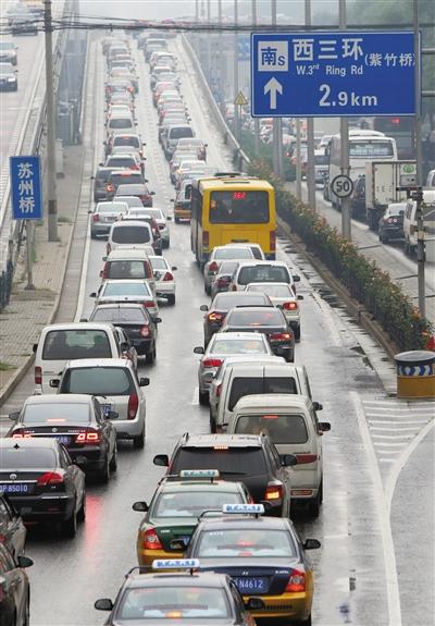 昨天14时,苏州桥北向南方向就开始拥堵。记者 黄月 摄
