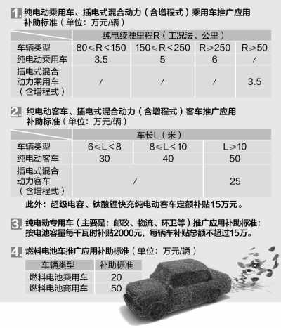 补助标准依据新能源汽车与同类传统汽车的基础差价确定,并考虑规模效应、技术进步等因素逐年退坡。2014年和2015年,纯电动乘用车、插电式混合动力(含增程式)乘用车、纯电动专用车、燃料电池汽车补助标准,在2013年标准基础上分别下降10%和20%;纯电动公交车、插电式混合动力(含增程式)公交车标准维持不变。(记者李丽辉)