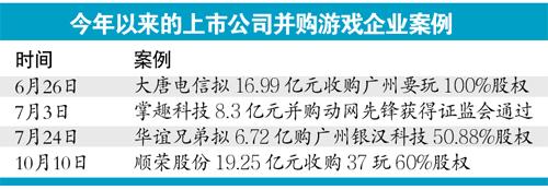 今年以来,上市公司并购网络游戏公司正演变成一大趋势。