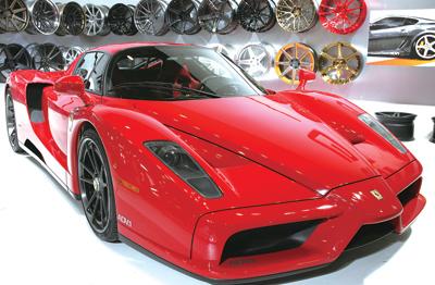 以法拉力创始人名字命名的法拉利恩佐,属于法拉力第四款限量生产车型。其底盘采用了碳纤维和蜂窝状铝合金材料,以降低整车重量。在动力方面,其搭载的是6.0L V12发动机,最大功率485.4kW,最大扭矩657N·m,并搭配来自F1的变速箱,0~100km/h加速时间仅需3.14秒,最高时速350km/h。 记者 宋平一 摄