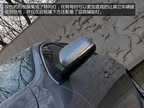 来到车身侧面,沃尔沃S60L轴距增加了80mm,让车身看上更加的纤长而沉稳。从B柱向后延伸的车顶弧线十分流畅,在美观的同时也很好的起到了降低风阻的作用。双色的后视镜集成了转向灯,在转弯时可以更加直观的让其它车辆接收到信号,并且在后视镜下方还配备了迎宾辅助灯。