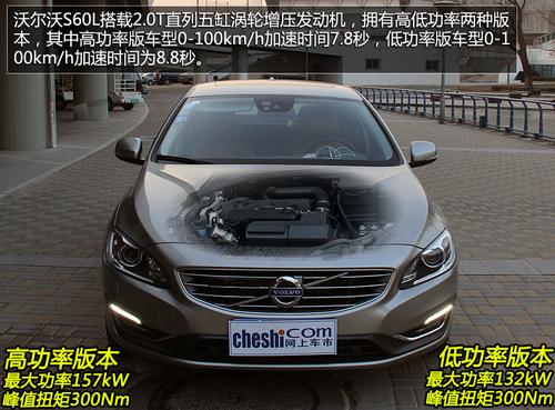 沃尔沃S60L搭载2.0T直列五缸涡轮增压发动机,拥有高低功率两种版本,高功率版最大功率157kW,峰值扭矩300Nm,而低功率版最大功率132kW,峰值扭矩同样为300Nm。其中高功率版车型0-100km/h加速时间7.8秒,百公里综合油耗7.9L;低功率版车型0-100km/h加速时间为8.8秒,综合油耗同为7.9L/km。与发动机相匹配的仍然是6速手自一体变速箱,该变速箱换挡平顺,主要是和发动机匹配度比较高,较为稳定。
