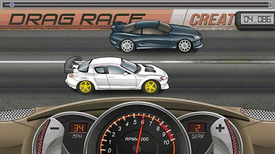 一个比较另类的赛车游戏,它确实比的是看谁最快,也是在赛道上,不过仅仅比的是直线加速。当然,这并不意味着你只要狂按油门就行了,这个游戏中的游戏赛车都是手动排挡的,按右边的仪表盘两侧的“+”“-”可以控制赛车挡位,也就是平时所说的手动拨片。你要清楚的是,换挡时要看转速表,当蓝灯亮起来的时候就是挂挡最好的时机。