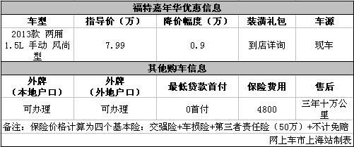 上海:福特嘉年华优惠0.9万 三年十万公里保养