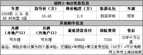 上海:S-MAX现金直降2.8万 三年十万公里保养