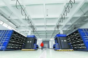 近日,河北首座电动汽车充换电站在唐山曹妃甸建成。曹妃甸电动汽车充换电站建筑面积1300多平方米,由配电综合楼、充换电区域以及整车充电区域组成,主要功能是为电动汽车更换电池和整车充电,将服务于曹妃甸开发区纯电动公交车。图为1月24日,在唐山曹妃甸电动汽车充换电站,技术人员巡视换电站换电区域设备。 新华社发(李建洲 摄)