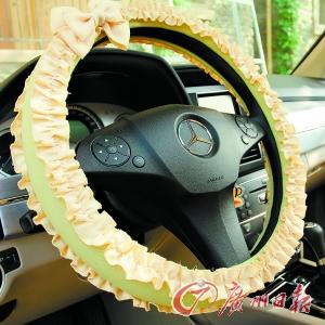 [温馨提示]:便宜的塑胶制的方向盘套容易变形,而且材料不环保,不如不用;布艺类型的方向盘套虽然可爱,受到很多女车主的喜爱,最大的弊端、也是最危险的是——布艺方向盘套容易让车主握不稳方向盘,且容易变形,出于行车安全角度,不推荐使用。(文/图 邓莉)