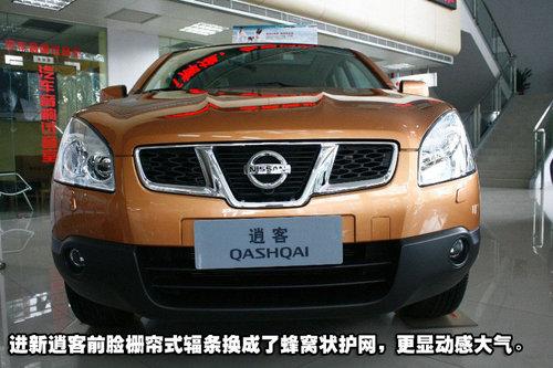 逍客外观的改变主要体现在前脸的中网部位,进气隔栅依然采用了垂直交错的网状结构,仅将栅帘式辐条换成了蜂窝状护网。此前车标周围的镀铬装饰条已经扩展到整个中网边缘。逍客在顶配车型配备了氙气大灯,可以提供更好的夜间驾驶视线。