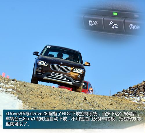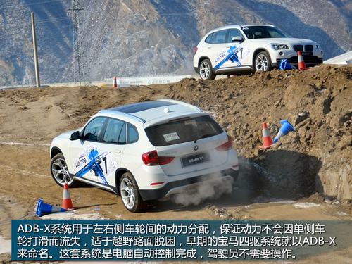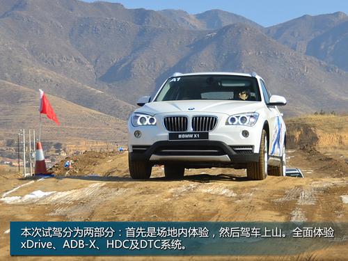 本次试驾分为两部分:首先是场地内体验,然后驾车上山。全面体验xDrive、ADB-X、HDC及DTC系统。ADB-X系统用于左右侧车轮间的动力分配,保证动力不会因单侧车轮打滑而流失,适于越野路面脱困,早期的宝马四驱系统就以ADB-X来命名。这套系统是电脑自动控制完成,驾驶员不需要操作。