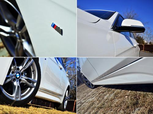 车身四周你还真能找到不少处于闷骚状态的M标识,翼子板、轮毂、侧裙、轮胎都是按照M级别量身打造。当然在发动机舱盖你看不到肌肉嶙峋的隆起,但车身四周的大包围也足以区分和普通版以及运动套装版的不同。最关键的是,你能从后车门的长度判断,这是一款长轴距的M套件车型,特别的定位,让这款车富含很多面,兼具实用和运动性。