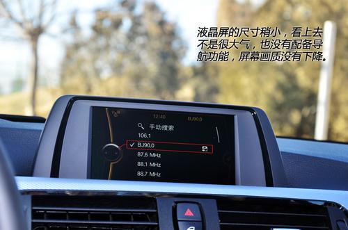 说到第一个不太令人满意的配置就是这款M套件版车型没有配备导航,并且使用了3系阵营中低配车型才使用的小号液晶屏,这显然不能让各位潜在车主满意。从车价来说,44.70万应该是要配备大液晶屏和导航的,另外,iDrive人机交互系统也使用了早期版本,实车在这科技配置方面显然差强人意。