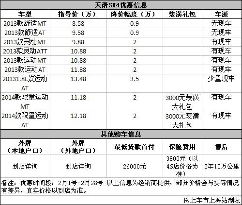 上海:天语SX4现金让利2万 送3000元装潢礼包