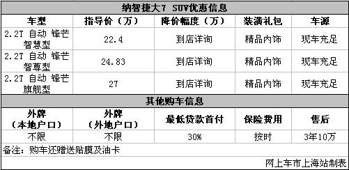 上海:现购纳智捷大7SUV送精品内饰+贴膜+油卡