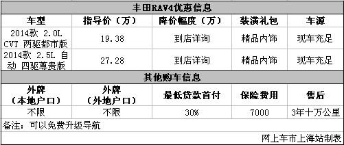 上海:RAV4购车送装潢大礼包 可免费升级导航