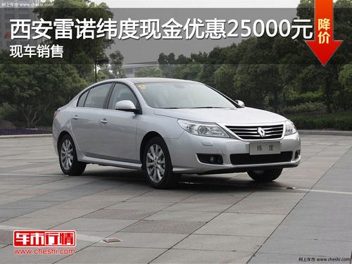 近日,据网上车市西安分站编辑从陕西龙之诺雷诺4S店获悉,雷诺2013改款纬度现金优惠2.5万元,再送装潢大礼,现车销售,有意者不妨致电经销商或者到店了解更多信息。