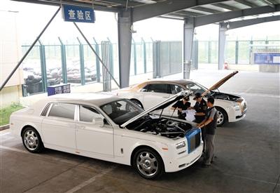 2013年8月16日,首都机场,两辆总价2000多万元的劳斯莱斯成为我国首批空运进境汽车。资料图片