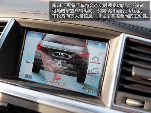 奔驰新GL还集成了车身倾角和车轮指向的车内显示功能,再途径非平坦路面时,驾驶者可以随时掌控车辆横向以及纵向的倾斜角度,并且可以实时显示前车轮指向,协助驾驶者在独自遇到困难时,也能从容的驾控车辆。不过由于新GL并非纯粹的越野车,所以在面对某些相对极端的路况时,还是会出现力不从心的状态,所以选择适合的路况进行越野,对新GL来说才是正确的选择。