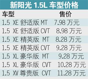 此次新阳光共推出三大级别7款车型,售价区间为7.98万元~11.28万元。7.98万元的起始定价成为首款8万元以下的1.5L入门级中级车。此外,新阳光在继承原有超大空间、超低油耗两大核心技术优势的基础上,进行了22项全面升级。新阳光搭载了“燃油双喷发动机”+“XTRONIC CVT变速箱”的黄金动力组合,使其百公里油耗低至5.6L。服务方面,除了常规的3年10万公里、金融及保险优惠政策,新阳光车主还可以享受“60天免费出险代步车”、“7天包换品质无忧承诺”等增值服务。(记者李光曼)