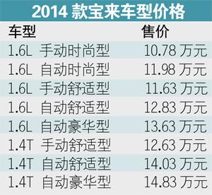 宝来2014款全系配置升级 售10.78万-14.83万