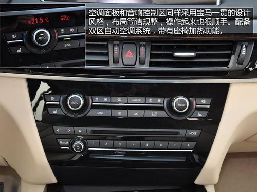 新一代X5内饰也发生了明显变化,整体上与现款3系等轿车类似,同样也是BMW全新的家族式风格。中控台液晶显示屏的位置上移是最明显的改变,不仅在布局上显得更加美观,而且看起来也更方便。空调面板和音响控制区同样采用宝马一贯的设计风格,布局简洁规整,操作起来也很顺手。配备双区自动空调系统,带有座椅加热功能。