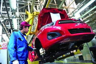 图为工人正在装备汽车。于海洋 摄