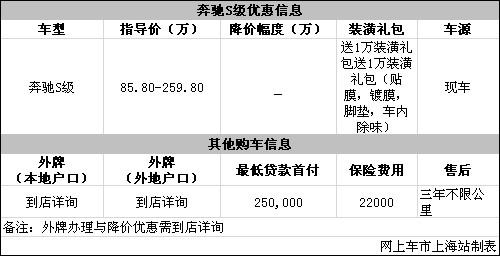 上海:进口奔驰S级送1万元装潢礼包 大量现车
