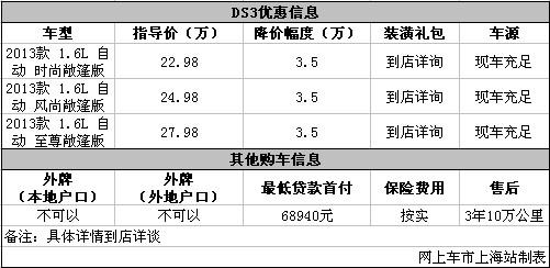 上海:DS3现全系优惠3.5万元 现车充足