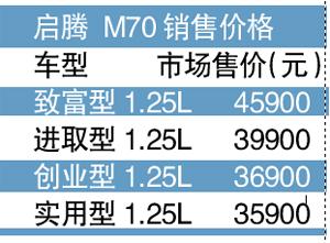 据介绍,启腾M70共有四款车型,产品售价区间在3.59万~4.59万元。