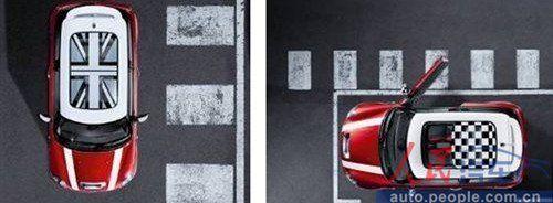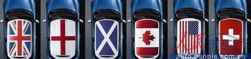 各国国旗、黑白旗、各种“英伦范儿”的格子甚至MINI这四个大字,MINI的车顶可谓天花乱坠。