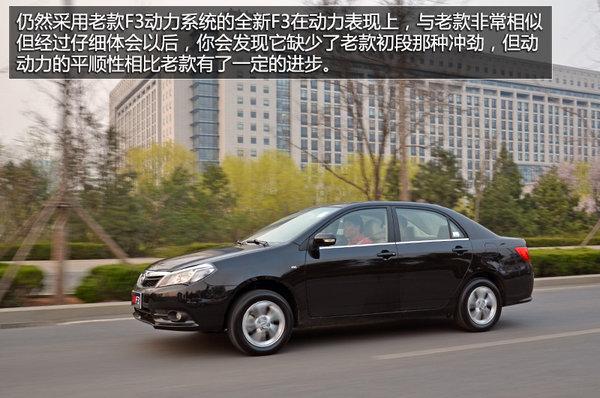 动力上依旧采用了与老款相同代号的BYD473QE 1.5L自然进气发动机,最大功率109马力,最大扭矩145牛米,参数上不算抢眼,实际开起来绝对算得上够用。仍然采用老款F3动力系统的全新F3在动力表现上,与老款非常相似但经过仔细体会以后,你会发现它缺少了老款初段那种冲劲,但动动力的平顺性相比老款有了一定的进步。