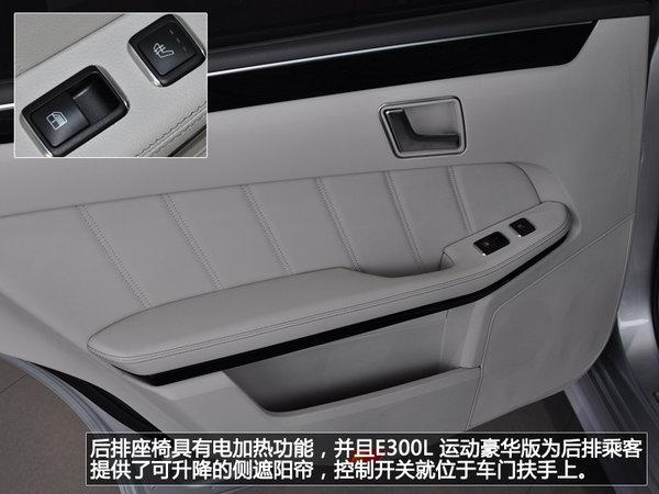 后排座椅具有电加热功能,并且E300L 运动豪华版为后排乘客提供了可升降的侧遮阳帘,控制开关就位于车门扶手上。