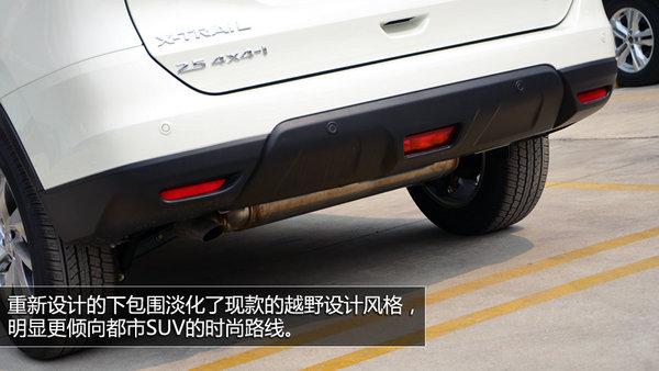 新一代奇骏尾部的变化略显平淡,不过相比现款奇骏,仍然在时尚感上有着很大的改善。简约有力的线条勾勒出圆润厚重的造型,并且加入了镀铬装饰来增强整体的层次感。尾灯的设计则与头灯遥相呼应,犀利的三角造型能够带来更强的视觉冲击力。