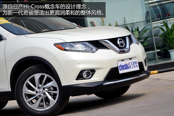 在设计方面,新一代奇骏发生了脱胎换骨的改变,很难在察觉到现款车型的影子,源自日产Hi-Cross概念车的设计理念,为新一代奇骏塑造出更圆润柔和的整体风格。从车头来看,前进气格栅的面积有所增加,一条粗壮的V字形镀铬装饰与引擎盖上的筋线完美相融,为整个前脸带来了更强的立体感。而造型犀利的前大灯搭配上运动化的前保险杠,则使其在视觉上显得更时尚更运动,迎合了城市SUV的定位。