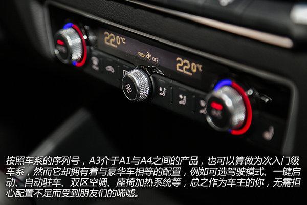 A3的中控台弧线蜿蜒至车门处,再与门板上部完美的融合在了一起,设计感绝不次于豪华车。此外别致的出风口也可称为巧夺天工的设计,带有金属修饰的银色外圈用来控制出风口的开闭,中央圆形调节阀可以方便驾乘者选择选择直吹或分散送风,